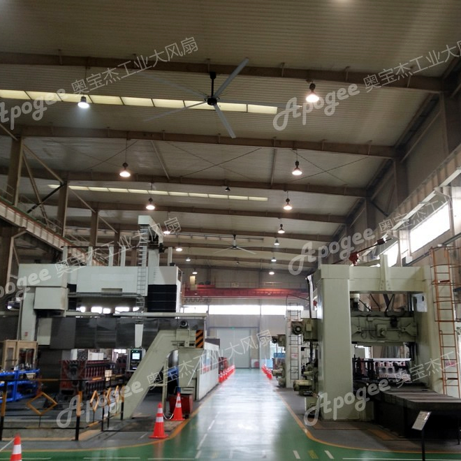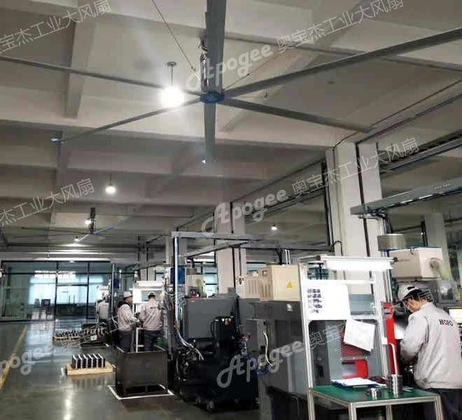 機加工車間安裝工業(yè)吊扇實現(xiàn)通風(fēng)降溫,在工作區(qū)域形成自然空氣環(huán)境,可有效預(yù)防職業(yè)病, 保障了人員與設(shè)備安全, 提高勞動生產(chǎn)效率.